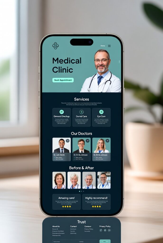 Modern, secure, and user-friendly websites optimized for healthcare. Features include service pages, doctor profiles, appointment booking systems, before & after galleries, and patient testimonials — all built with clean design, accessibility standards, and trust-building elements.